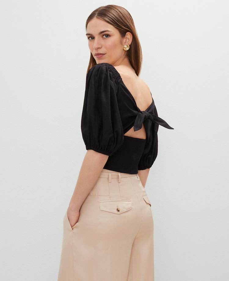 Petite Weekend Collection Linen Blend Bubble Hem Top