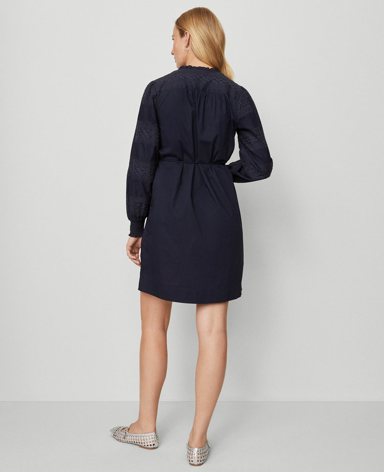 Petite Embroidered Linen Blend Open Back Flare Dress