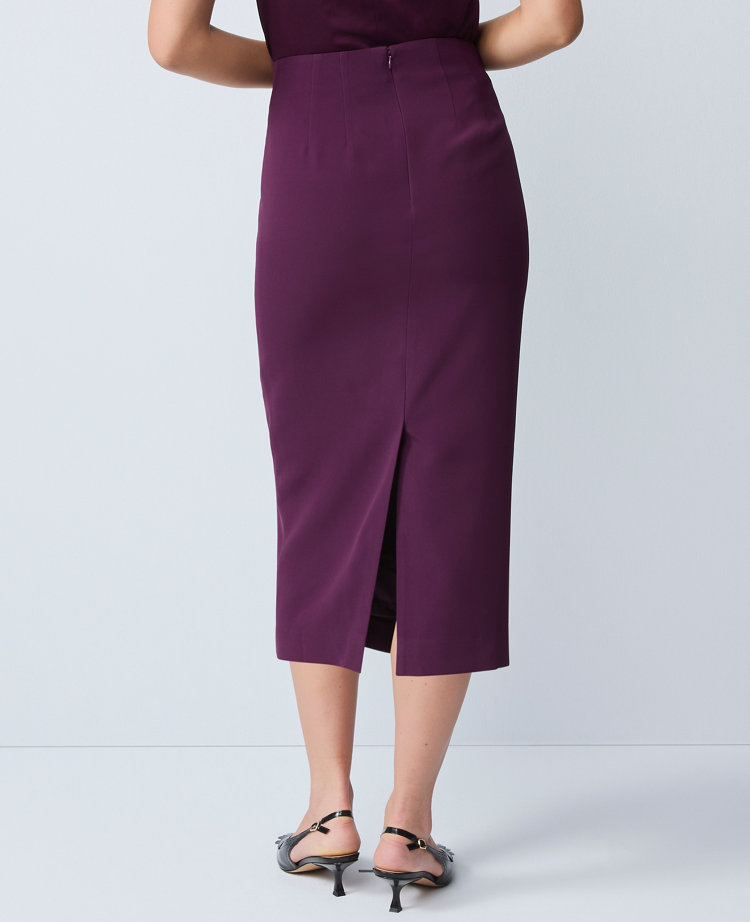 This timeless column skirt gives you a perfect pulled-together silhouette. Front welt pockets. Front slit. Back zip with hook-and-eye closure.