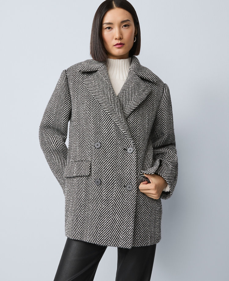 A timeless silhouette with a hint of maritime chic, this impeccably cut peacoat sails from work to weekend with ease. Notched lapels. Double breasted button front. Front-button closures. Long sleeves. Front flap welt pockets. Lined.