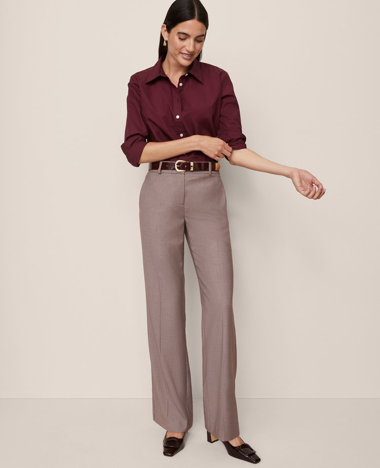 This beyond-flattering trouser is a classic leg-lengthening silhouette with a perfect touch of flare. Front zip with a hook-and-bar closure. Belt loops. Slash pockets. Back welt pockets.