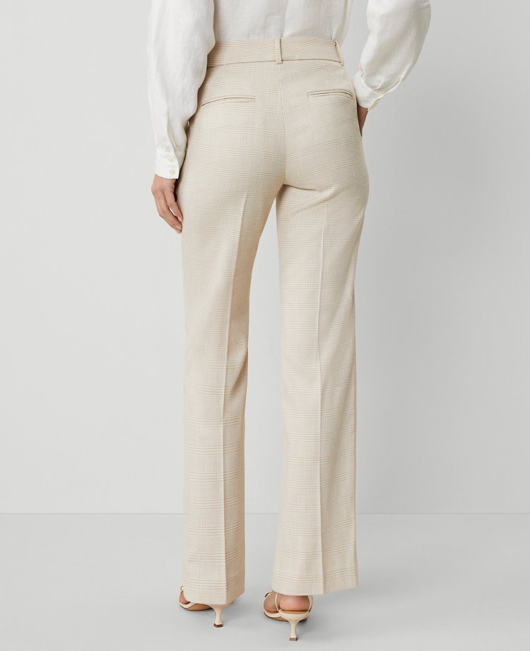 A classic leg-lengthening, slightly flared silhouette. Front zip with a hook-and-bar closure. Belt loops. Slash pockets. Back welt pockets.