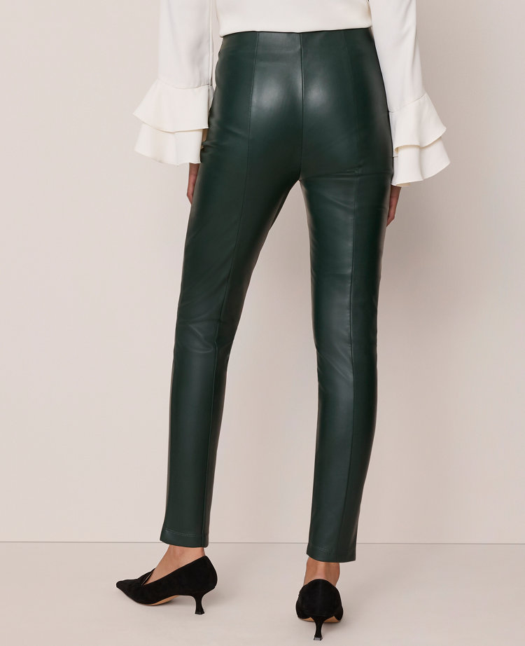 Sleek and stretchy, our faux leather leggings are endlessly flattering and extra versatile. Elasticized waist. Hidden side zip with hook-and-eye closure.